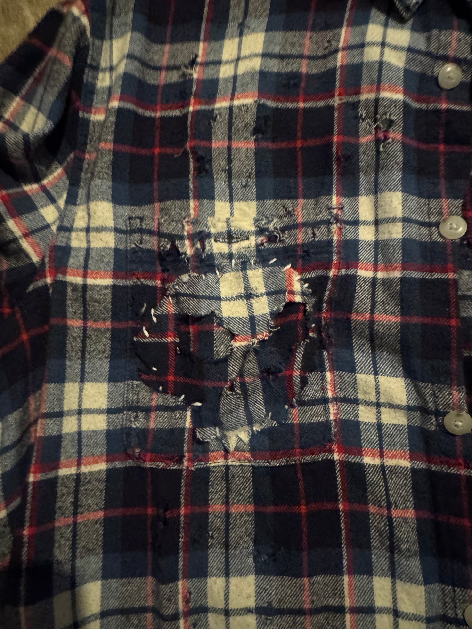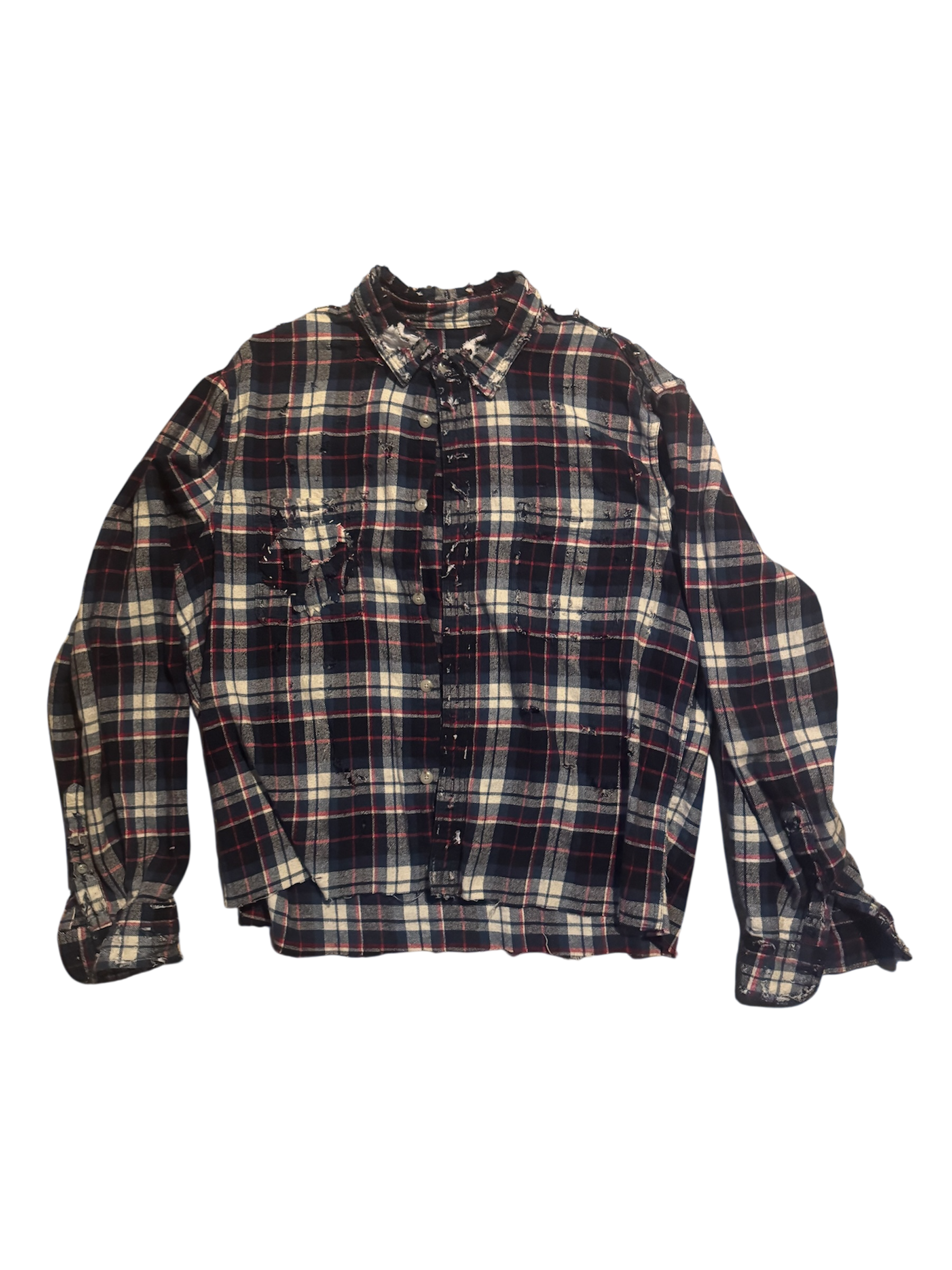 100% cotton Fully distress flannel with back plaster & studs with signature skull.